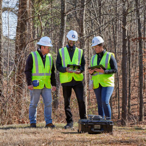 Three environmental engineers with GIS